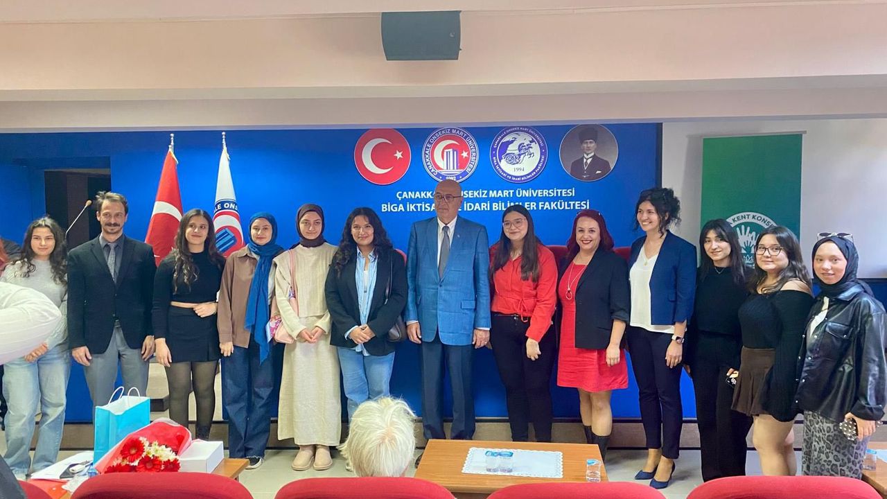 Çanakkale Onsekiz Mart Üniversitesi Biga iktisadi ve idari bilimler fakültesi konferans salonunda gerçekleşen etkinliğe emekli Milletvekili Ahmet küçük, Biga Ticaret ve Sanayi odası Genel Sekreteri Dilay Şen Bitirim, çok sayıda öğrenci ve basın mensubu katıldı.