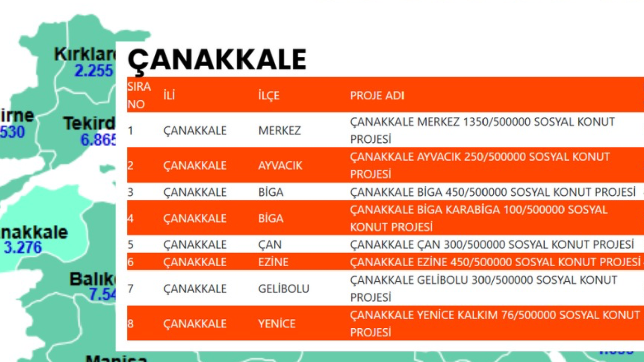 TOKİ, 240 aya kadar taksit fırsatıyla Çanakkale'de yapacağı 3.276 konutun ilçelere göre dağılımını açıkladı.