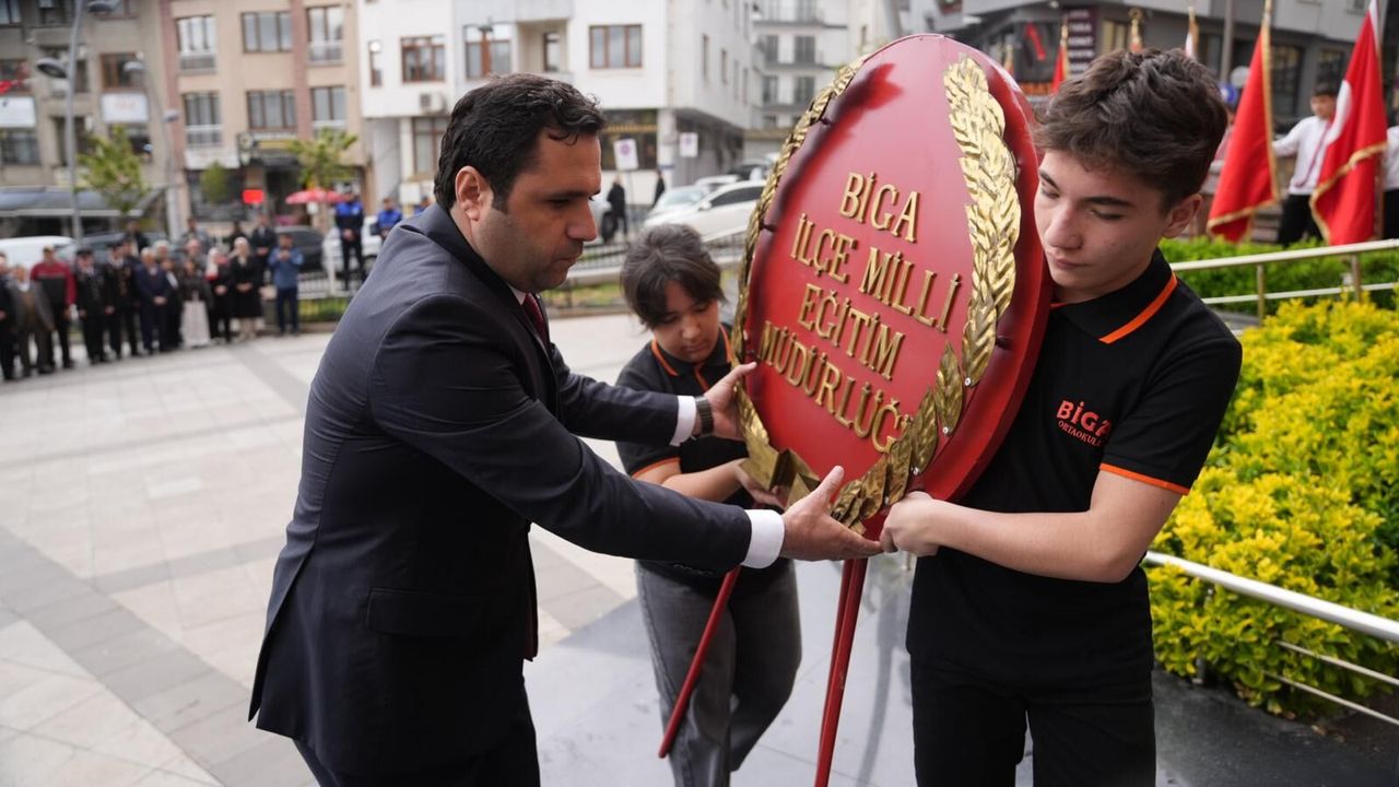 Türkiye Büyük Millet Meclisi’nin açılışının 106’ncı yıl dönümü dolayısıyla düzenlenen törende, Atatürk Anıtı’na çelenk sunumu gerçekleştirildi. Biga İlçe Milli Eğitim Müdürü Muhammet Nazlıcan ve öğrenciler tarafından yapılan çelenk sunumunun ardından, saygı duruşunda bulunuldu ve hep bir ağızdan İstiklal Marşı okundu.