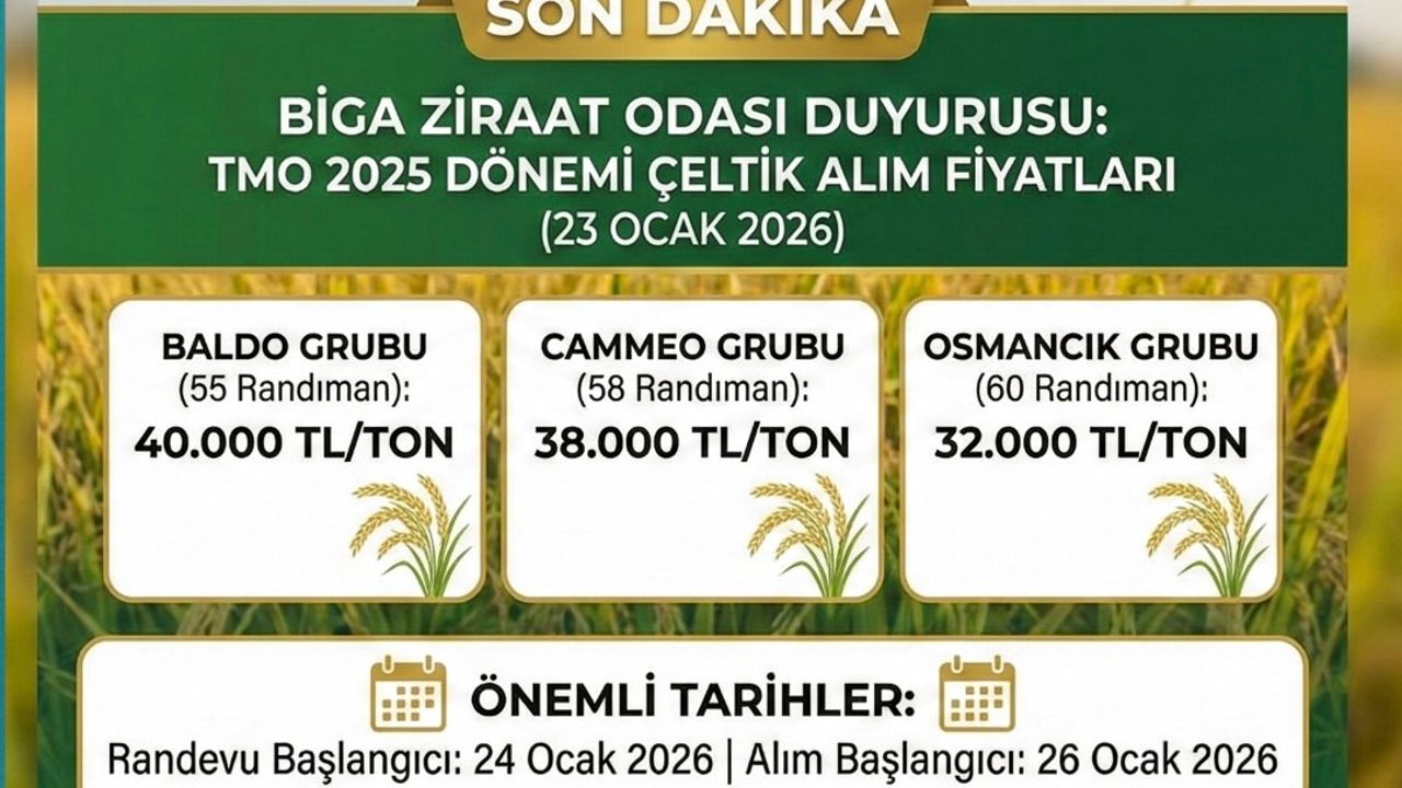 Toprak Mahsulleri Ofisi (TMO), üreticilerin beklediği 2025 dönemi çeltik alım fiyatlarını resmi internet sitesi üzerinden duyurdu. Yapılan açıklamada alım fiyatlarının yanı sıra randevu ve alım başlangıç tarihleri de netleşti.