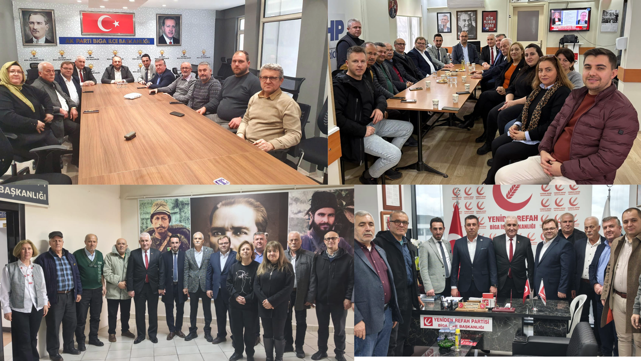 Biga Esnaf ve Sanatkarlar Odası Başkanı Hakkı Berber, Biga Şoförler ve Otomobilciler Esnaf Odası Başkanı Sait Tanur, Biga Lokantacılar ve Köfteciler Esnaf Odası Başkanı Adnan Akçe, Biga Kahveciler Esnaf Odası Başkanı İlhan Yavuz ve Biga Esnaf ve Sanatkarlar Kredi ve Kefalet Kooperatifi Başkanı Mustafa Kurt; siyasi parti ilçe başkanlıklarını ziyaret ederek birlik ve beraberlik mesajı verdiler.