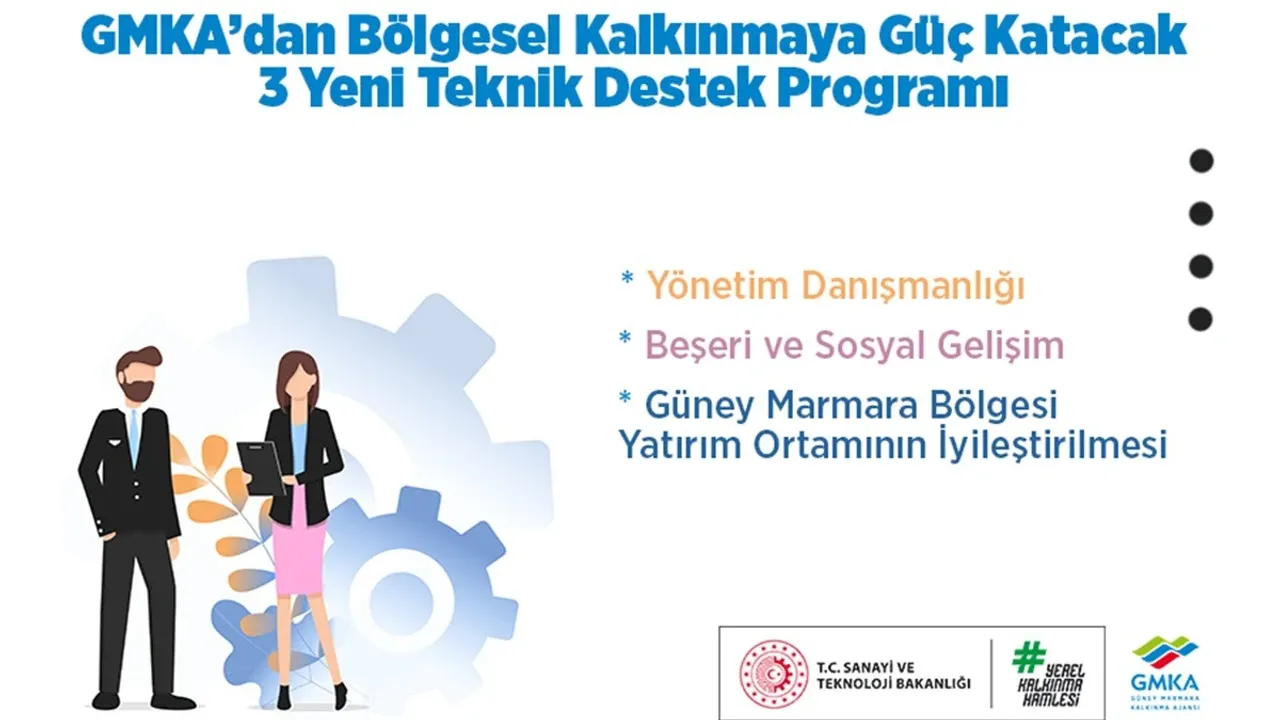 Güney Marmara Kalkınma Ajansı (GMKA), TR22 Bölgesi olarak adlandırılan Çanakkale ve Balıkesir’de sürdürülebilir kalkınmayı hızlandırmak amacıyla üç yeni teknik destek programını kamuoyuna ilan etti. Bölgedeki kurum ve kuruluşların kurumsal yetkinliklerini artırmayı hedefleyen ajans; "Yatırım Ortamının İyileştirilmesi", "Yönetim Danışmanlığı" ve "Beşeri ve Sosyal Gelişim" başlıkları altında eğitim ve danışmanlık hizmetleri sunacak.