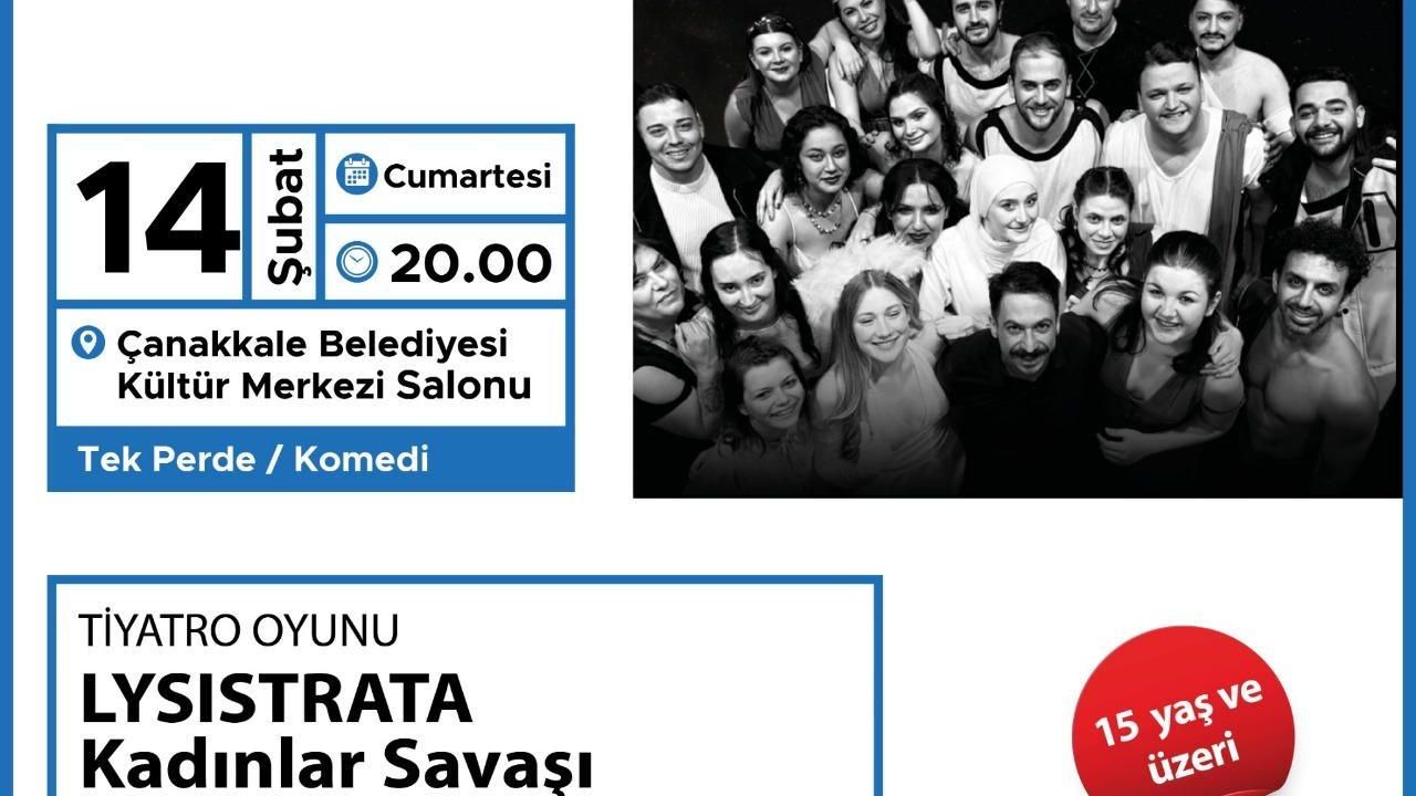 Biga Belediyesi bünyesinde sanatsal faaliyetlerini sürdüren İlçe Tiyatrosu, büyük bir prodüksiyonla Çanakkale merkezde izleyici karşısına çıkmaya hazırlanıyor. Aristophanes’in ölümsüz eseri "Lysistrata-Kadınlar Savaşı", Murat Gülcen yönetmenliğinde, savaşın yıkıcılığına karşı kadınların başlattığı barış mücadelesini mizahi ve düşündürücü bir dille ele alıyor.