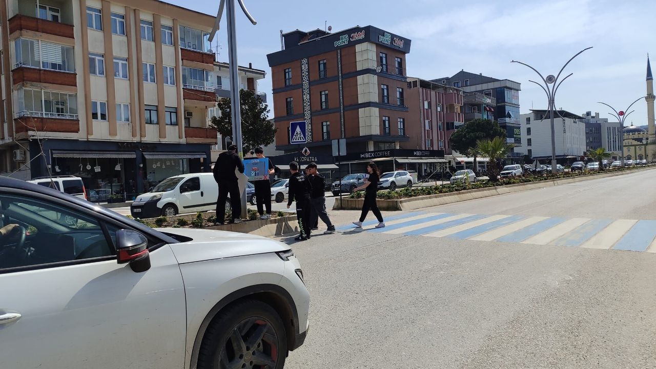 Mehmet Akif Ersoy Lisesi öğrencileri, okul binasının önünde bulunan yaya geçidi üzerinde bir araya gelerek sürücülerle buluştu. Trafik güvenliğini artırmak amacıyla düzenlenen etkinlikte, sürücülerin trafikte daha dikkatli ve duyarlı olmaları hedeflendi.