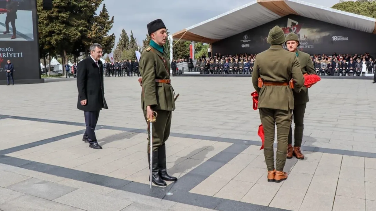 "Bir Milletin Fedakârlığı, Bir Bayrağın Hürriyeti" temasıyla düzenlenen törene Cumhurbaşkanı Yardımcısı Cevdet Yılmaz, Milli Savunma Bakanı Yaşar Güler, Kültür ve Turizm Bakanı Mehmet Nuri Ersoy ile Aile ve Sosyal Hizmetler Bakanı Mahinur Özdemir Göktaş katıldı. Genelkurmay Başkanı Orgeneral Selçuk Bayraktaroğlu, Çanakkale Valisi Ömer Toraman ve Belediye Başkanı Muharrem Erkek’in de hazır bulunduğu törende, şehitler için Kur’an-ı Kerim tilaveti yapılarak dualar edildi.