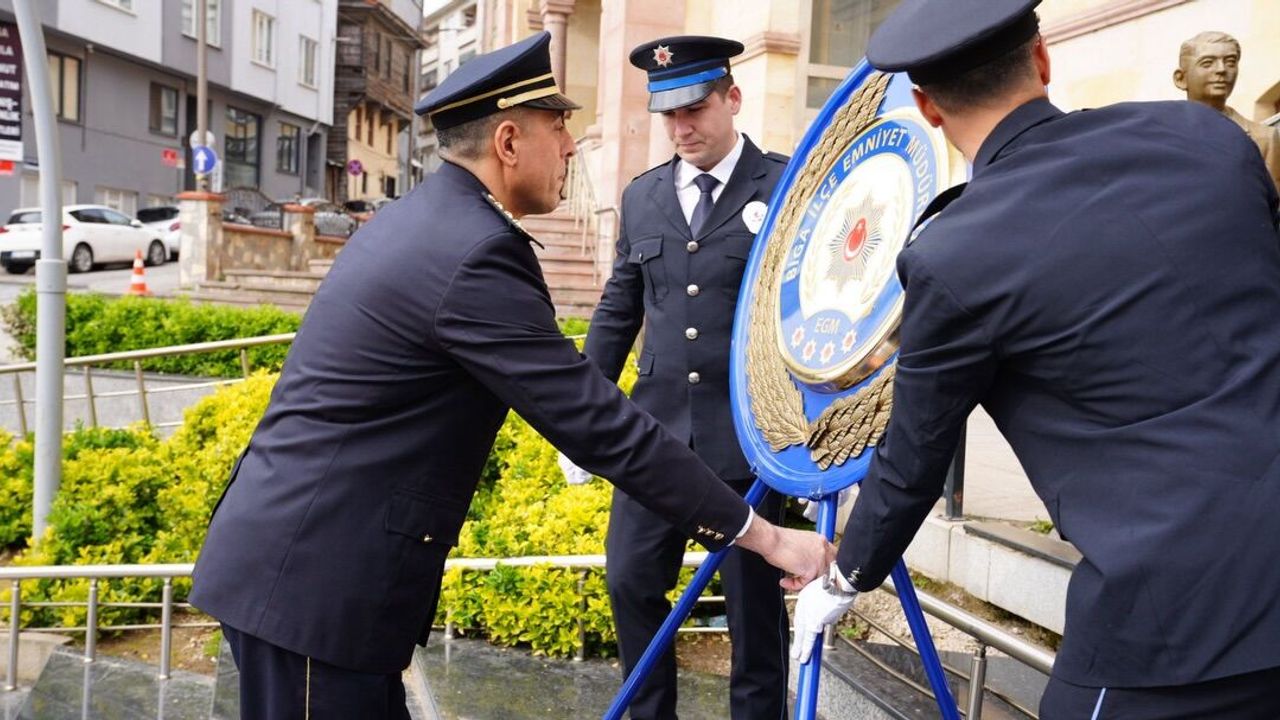Biga İlçe Emniyet Müdürü Emre Bolat, Türk Polis Teşkilatı'nın 181'inci yıldönümü nedeniyle Cumhuriyet Meydanı'nda düzenlenen törenle Atatürk Anıtı'na çelenk sundu. Törene Biga Belediye Başkan Yardımcısı Ergün Tulnay ve belediye meclis üyeleri de katıldı.